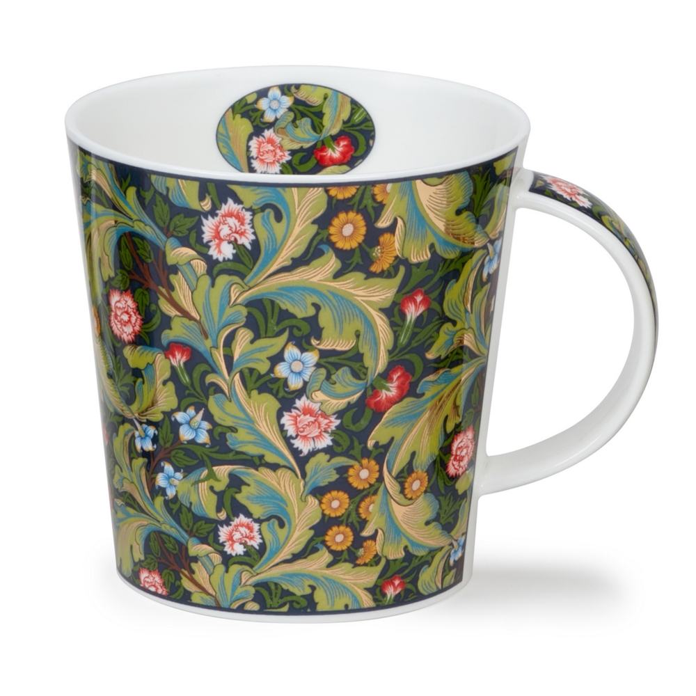 Dunoon fine bone china mugs are handcrafted in Staffordshire, England. They are produced to the highest quality using traditional methods which have been developed and refined over 3 family generations in the pottery industry. Named after a beautiful mountain range in the Scottish Highlands, Cairngorm is a straight edged, contemporary mug shape holding 0.48L. It is a larger version of our Lomond shape, and can make an excellent gift for anyone.Based on iconic designs by William Morris, this 'Arts and Crafts' collection features the Leicester design, where large gilded leaves entwine with delicate blooms in shades of yellow and pink for a truly luxurious design featuring 22 carat gold.