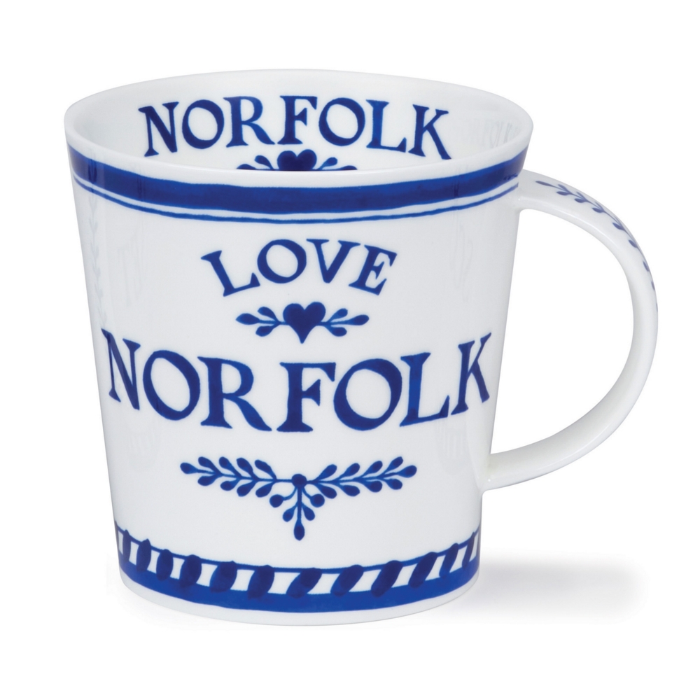 Dunoon fine bone china mugs are handcrafted in Staffordshire, England. They are produced to the highest quality using traditional methods which have been developed and refined over 3 family generations in the pottery industry. With its straight edges and clean lines, Cairngorm is a contemporary mug shape holding 0.48L. It is a larger version of our Lomond shape, and Cairngorm can make an excellent gift for anyone. With the beautifully flat and tranquil Norfolk Broads, beaches and abundance of wildlife, there is so much to love about Norfolk which is a popular destination for tourists and locals alike