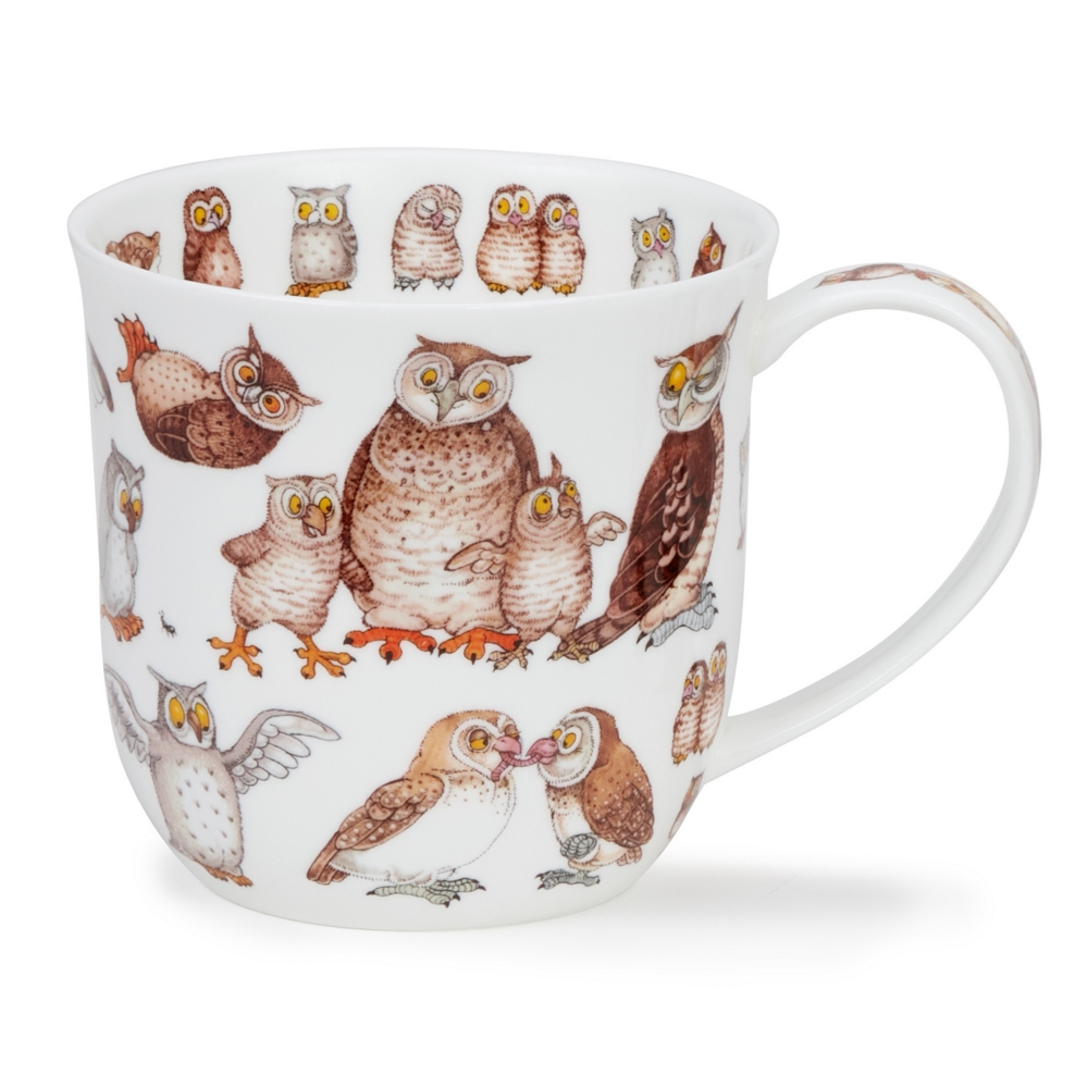 Dunoon fine bone china mugs are handcrafted in Staffordshire, England. They are produced to the highest quality using traditional methods which have been developed and refined over 3 family generations in the pottery industry. Cumbrae is an oversized, cosy drinking mug which is perfect for wrapping your hands around and snuggling up on the sofa with. It has the ability to show off designs which are both modern and traditional, holding 0.45L 'Twitters' is a cheery design by Cherry Denman featuring wide eyed owls and worm munching owlets