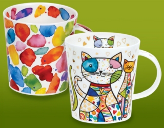 Lomond is a smaller version of our Cairngorm shape. Lomond holds a variety of patterns, features geometrics, peacock feathers, cats and umbrellas, some embellished with 22 carat gold. This is a slightly more feminine shape than its Cairngorm parent, but just as comfortable to use. Fine Bone China, Made in England.