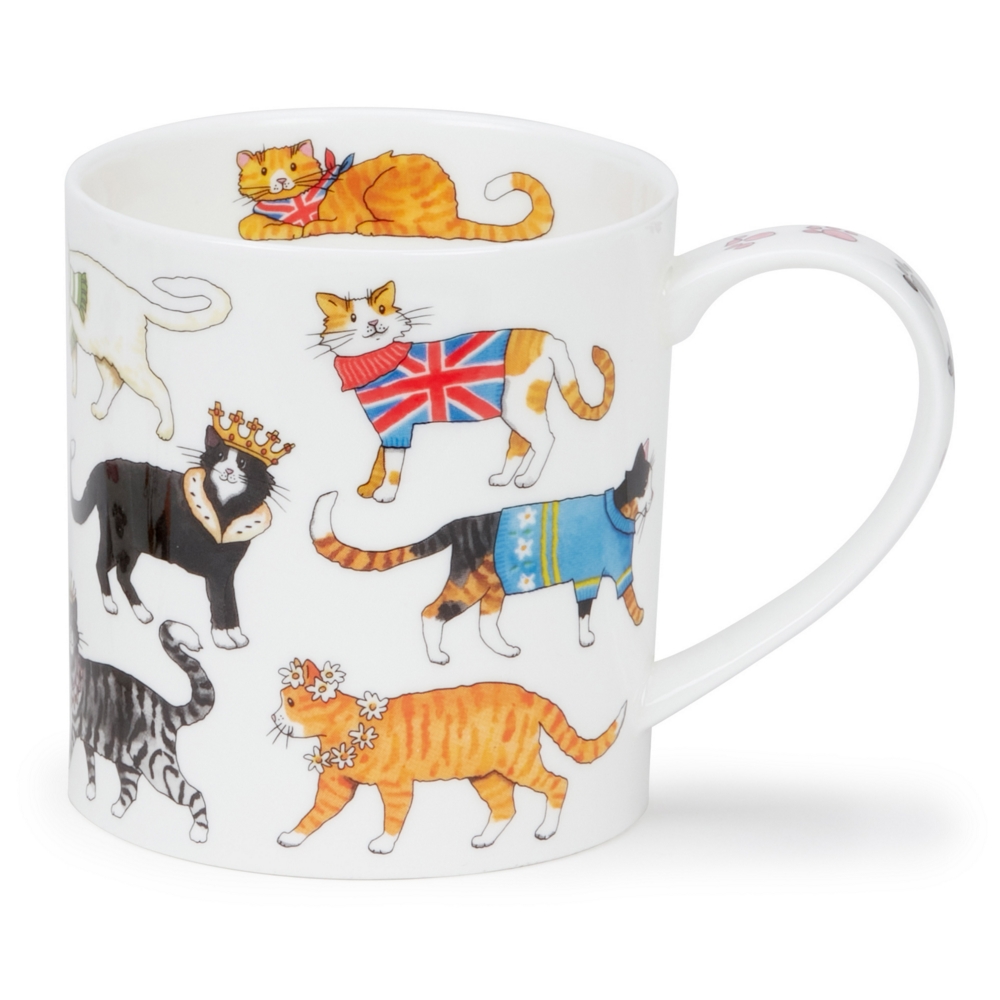 Dunoon fine bone china mugs are handcrafted in Staffordshire, England. They are produced to the highest quality using traditional methods which have been developed and refined over 3 family generations in the pottery industry. Orkney is a modern, straight sided mug which lends itself to contemporary patterns. It has a strap handle making it very comfortable to use and holds 0.35L. A colourful collection of cheerful cats all dressed to impress in a feline fashion parade! Quirky jumpers or playful hats these adorable cats know how to have the purrfect time