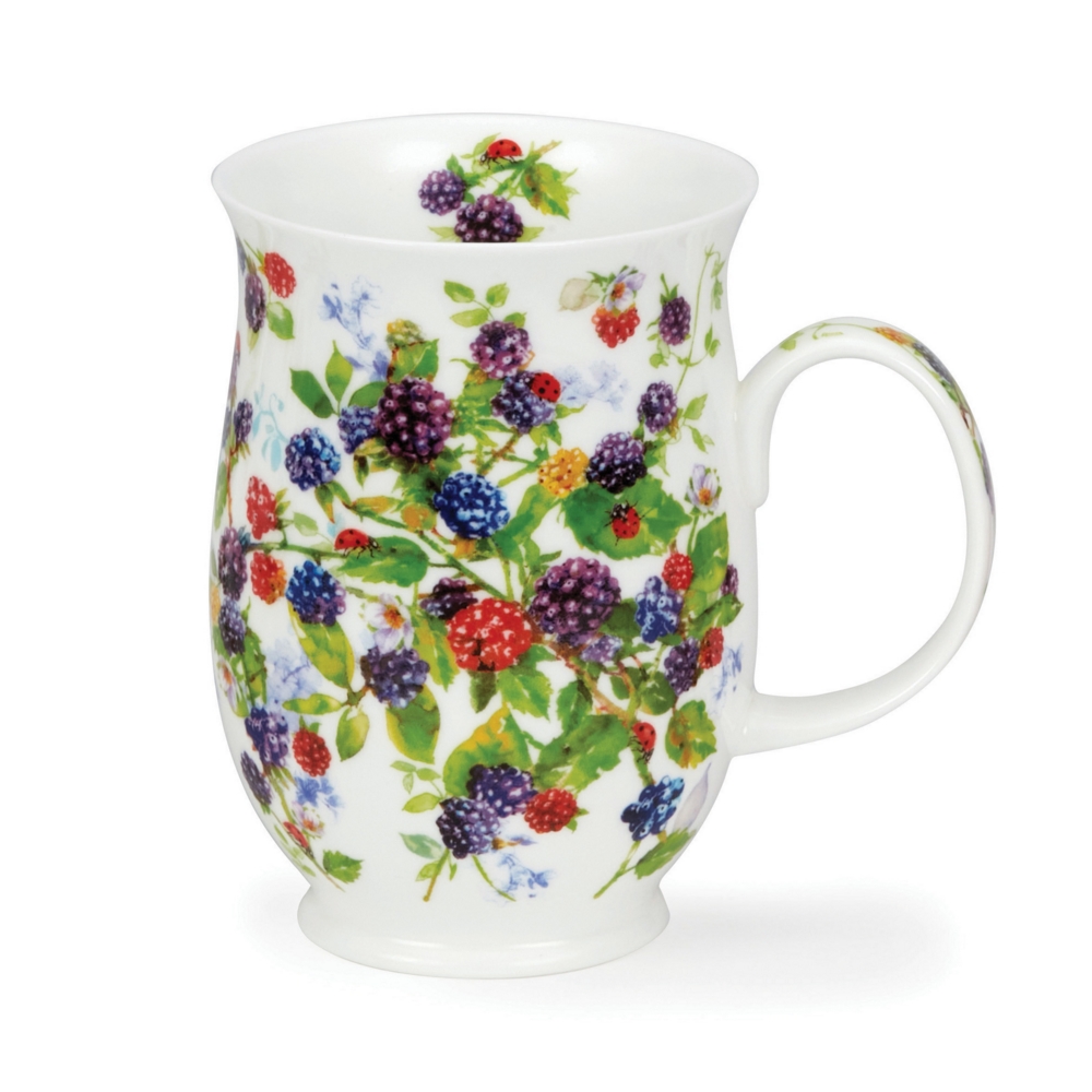 Dunoon fine bone china mugs are handcrafted in Staffordshire, England. They are produced to the highest quality using traditional methods which have been developed and refined over 3 family generations in the pottery industry. Suffolk is one of our most traditional shapes with its flared top, convex middle and flared foot. It has a curved, delicate handle.Bushes overspill with juicy, ripened blackberries, whilst little red ladybirds and soft white flowers hide amongst the brambles.